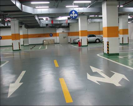 停車場劃線工程施工時,如果車長不大6米及車寬不大于1.8米的車,規(guī)范車與車之間間距為不小于0.5米,車與墻、車位端之間間距不小于0.5米;車長大于6米不大于8米,車寬大于1.8米不大于2.2米的話,車與車之間間距不小于0.7米等。回車路段的相應規(guī)范是滿足一輛車一次性回轉的需要,這實際上為不同類型的停車場提供了不同的尺寸松動。因此對于一般以停小型車為主的停車場來講,車位尺寸多采用2.5~2.7×5~6的尺寸,而單車道回轉車道寬度不小于3.5米,雙車道不少于5米。